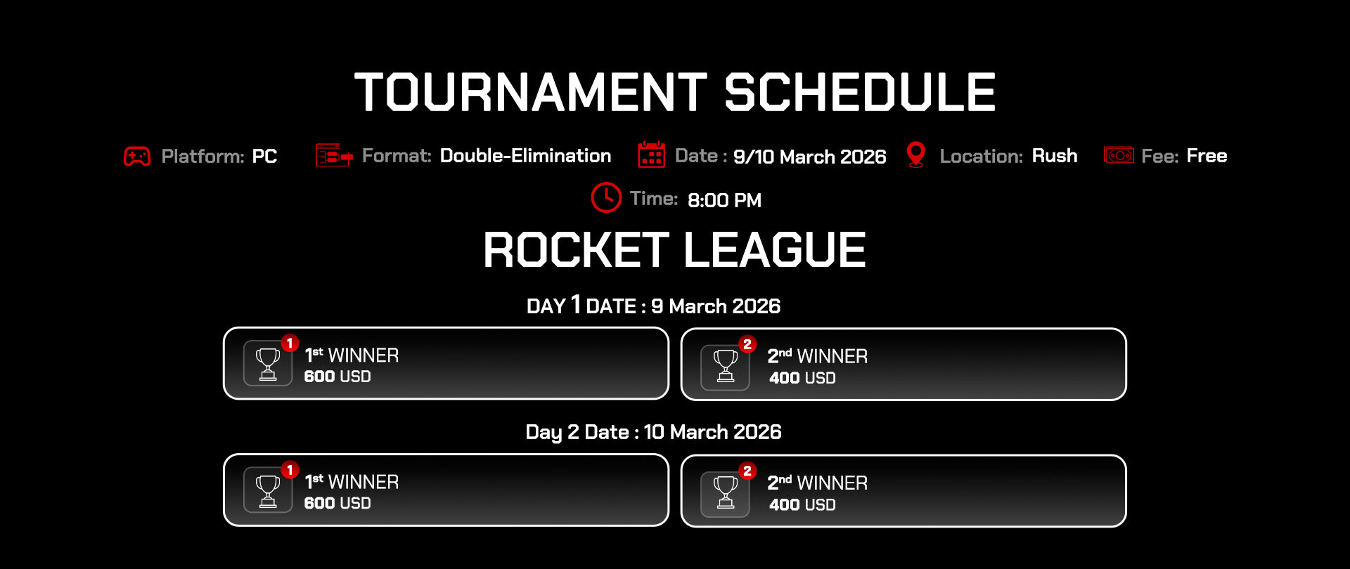 - Players may only participate in one day. (Registration on both days is strictly prohibited!)